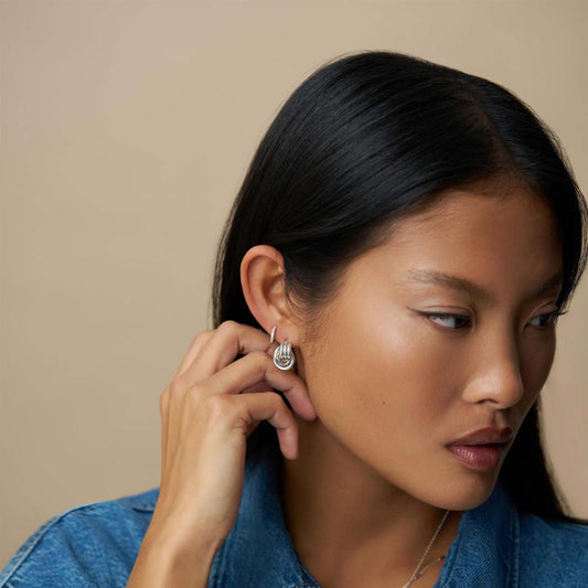Organic Round Wave Silver Huggie Hoops
