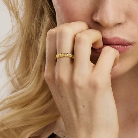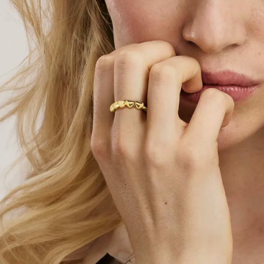 STRETCH RING WITH GOLD HEART AND STONES - WHITE PEARL
