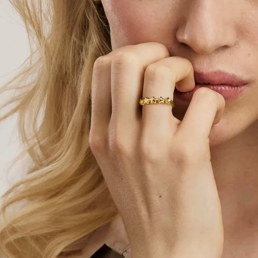 STRETCH RING WITH GOLD HEART AND STONES - GARNET