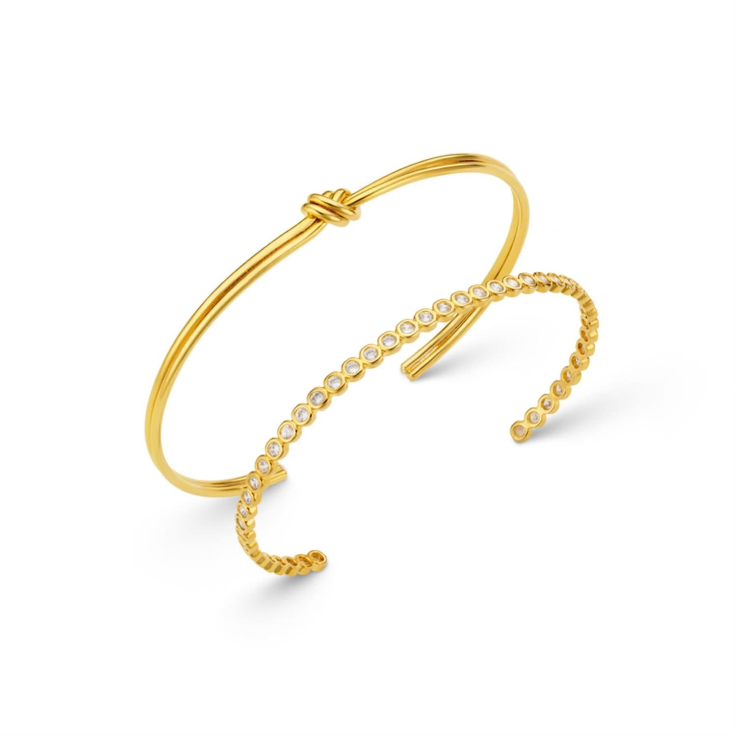 Linear Knot & Crystal Bangle 2 pack