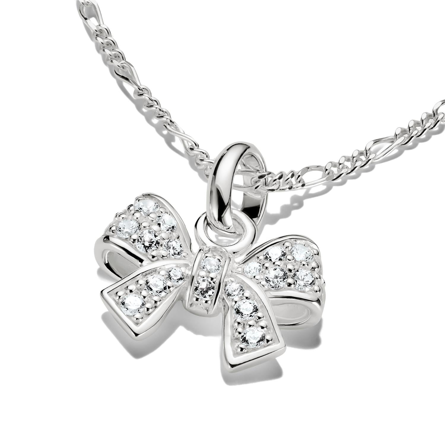Charm Pendant Bow With Stones Connect Silver