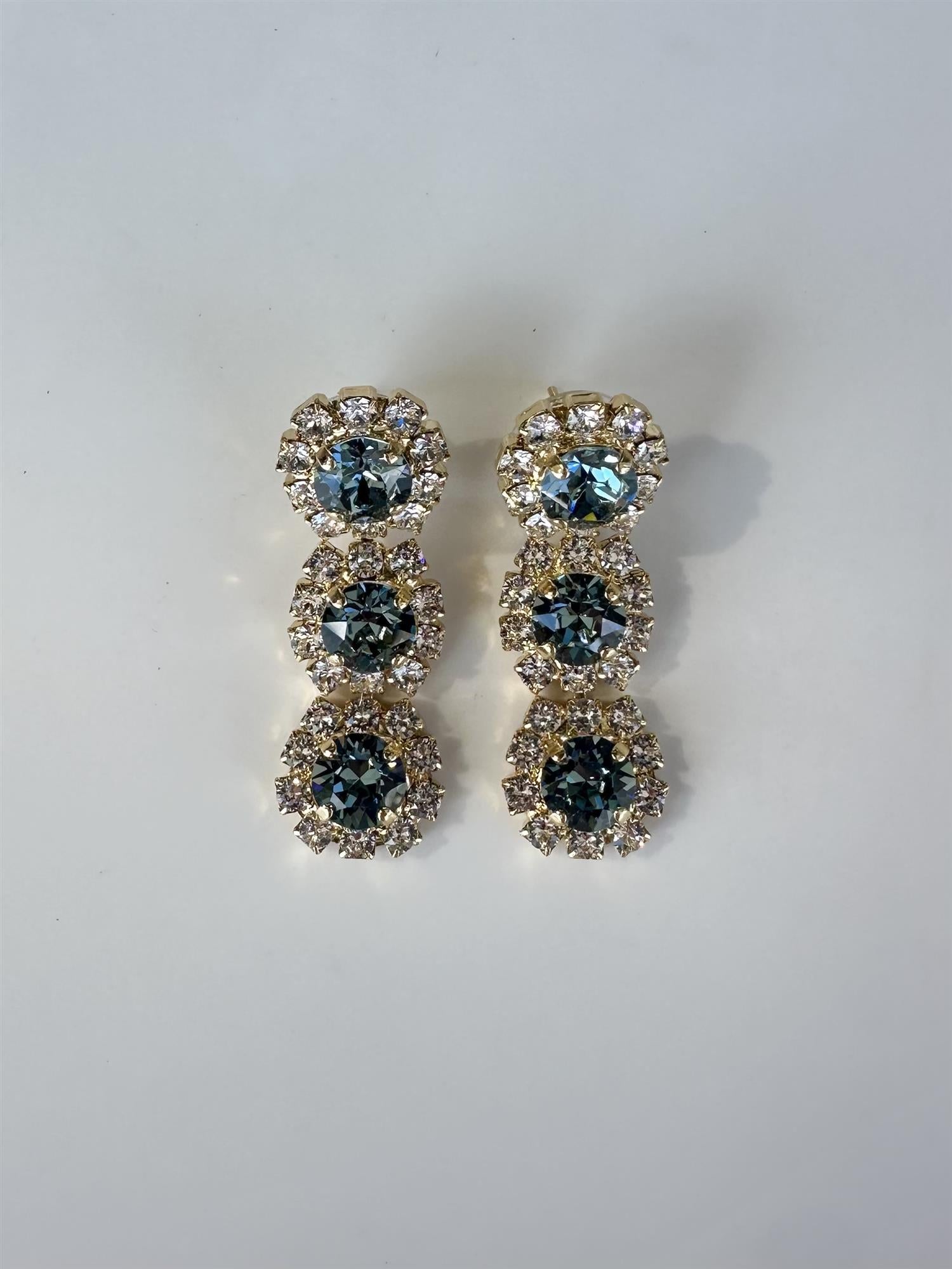Bestselger fra Caprice Decadent! Lekre ørdeobber med tre ledd. Nydelig blåfarge på stenene i midten og klare stener rundt. Petit Fleur Trio er klassiske og utrolig dekorative. De pynter opp uten å være tunge i ørene. Vi har de i flere ulike farger!