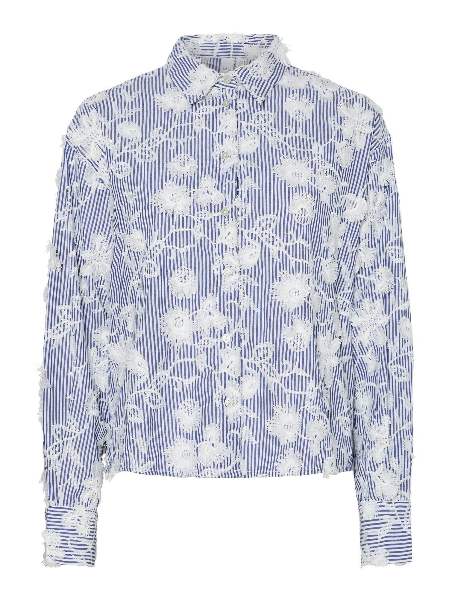 Lekker bluse fra YAS med blomsterdetaljer med rysjer, spiss krage og knapper foran.