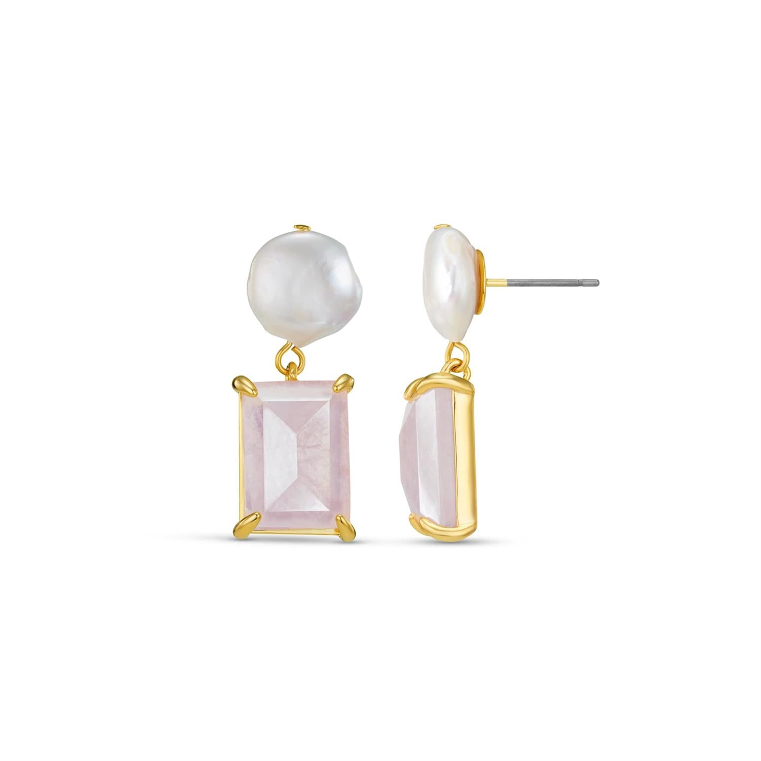 Pearl & Rose Quartz Drop Earring