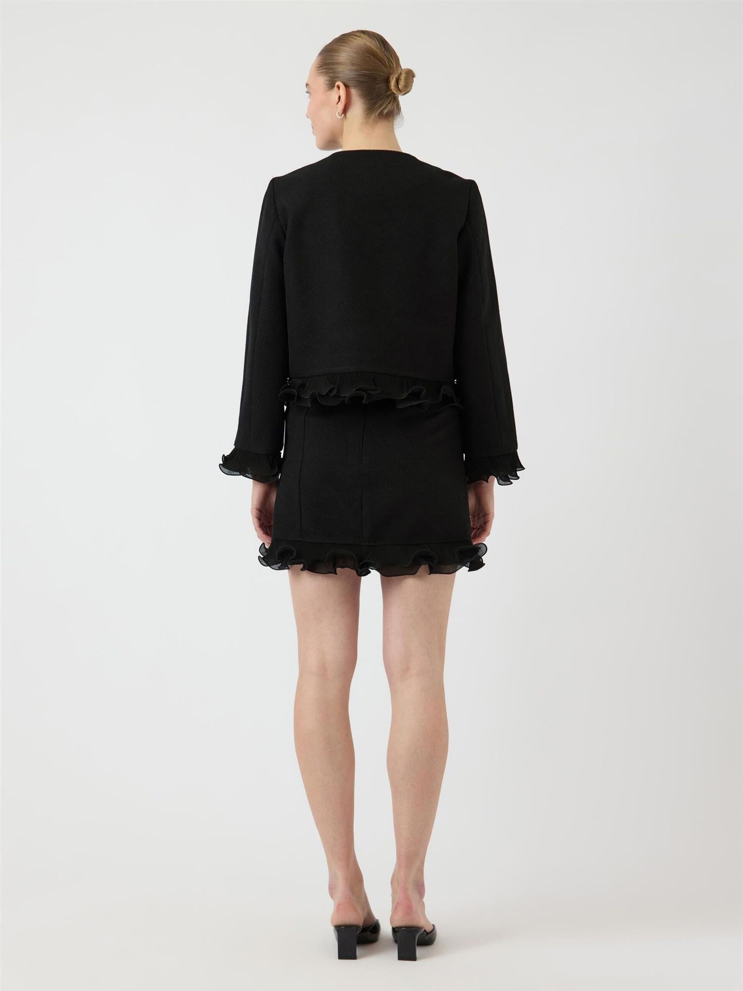 Lekker jakke med volangkant og sølvknapper, kul både som jakke og topp.