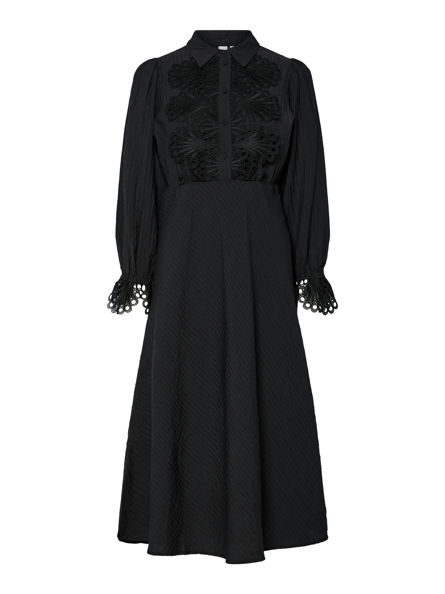 En lekker lang kjole fra YAS med "blonde" detaljer i front og på ermene.