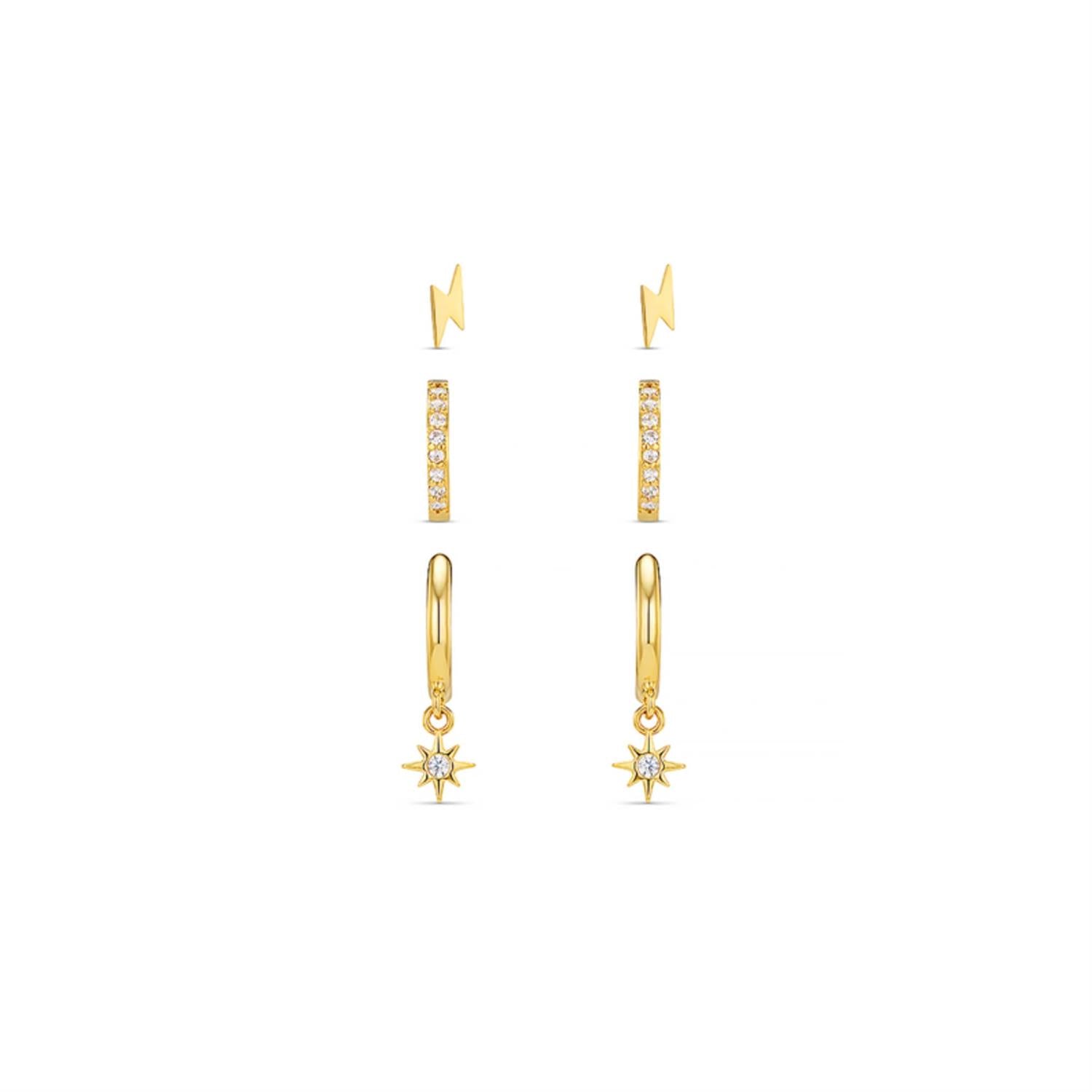 Pave Lightning & Starburst Micro Hoop Earring 3 Pack