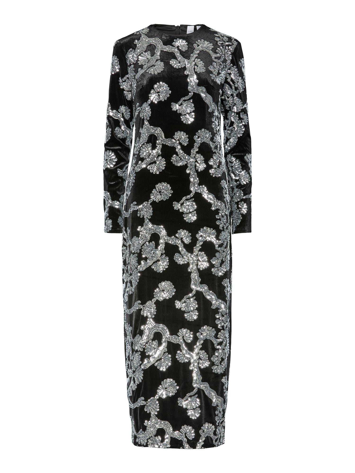 YASFLORANA LS LONG DRESS - BLACK/SILVER