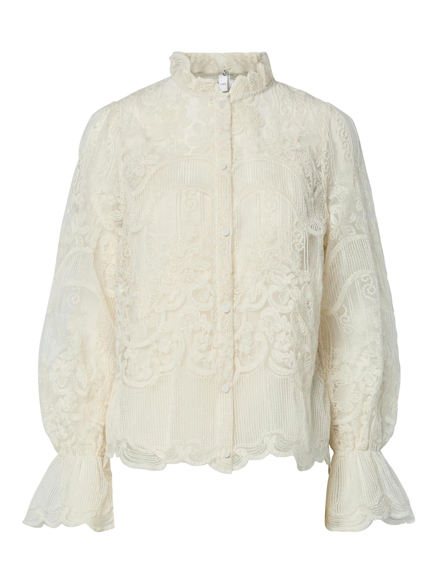 Nydelig "sheer" bluse fra YAS med blondedetaljer, følger med singlet.