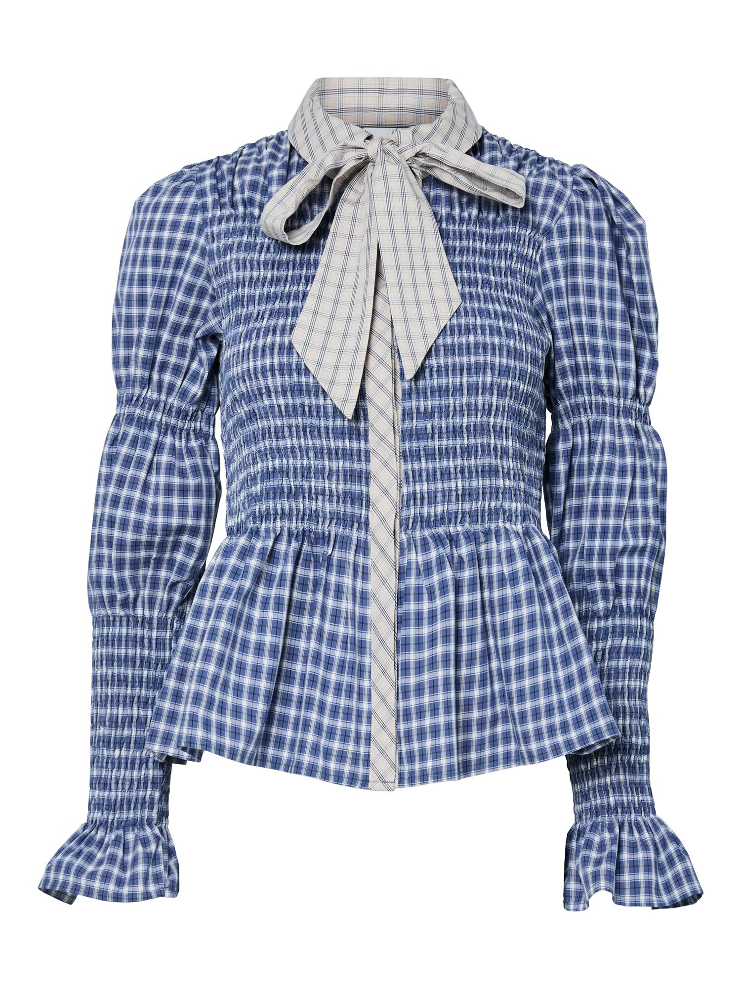 Røff bluse fra YAS med ruter og "smock" stoff som gir en feminin fasong.