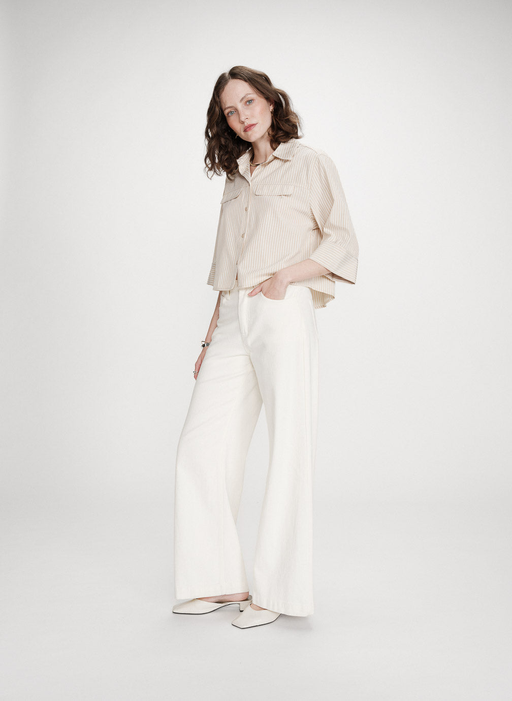 En kul og kort skjorte med jukselommer i front. Skjorten har litt a-fasong og 2/3 ermlengde.